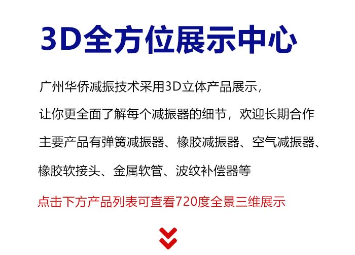 廣州華僑減振技術(shù)有限公司主要產(chǎn)品有彈簧減振器、橡膠減振器、空氣減振器、橡膠軟接頭、金屬軟管、波紋補(bǔ)償器等,其產(chǎn)品適用于水泵、風(fēng)機(jī)、冷水機(jī)組、柴油機(jī)、冷卻塔、變壓器、風(fēng)力發(fā)電等設(shè)備的基礎(chǔ)減振以及各類風(fēng)機(jī)盤管,新風(fēng)機(jī)組、風(fēng)管等吊裝減振。波紋管產(chǎn)品及橡膠軟接頭通用于自來水、電力、鋼鐵、石油、化工、造紙、印刷等行業(yè)。